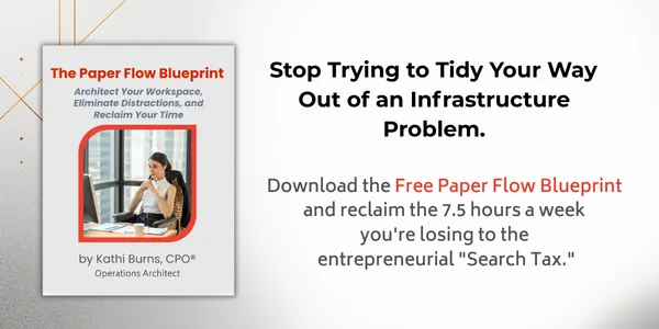 Kathi Burns, CPO® is a Board Certified Professional Organizer and Operational Architect with over two decades of experience designing systems for global giants like Sempra Energy and countless CEOs and entrepreneurs.